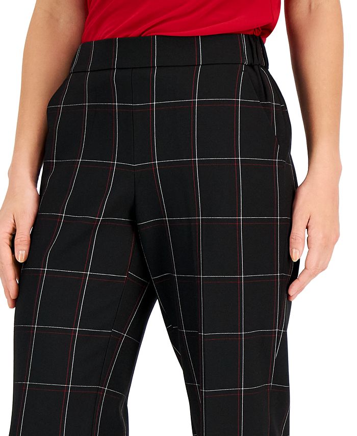 Perfectly polished plaid lends an effortlessly sophisticated finish to these classically tailored pants by Kasper; pair with the matching blazer for an always boardroom-ready look.
