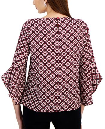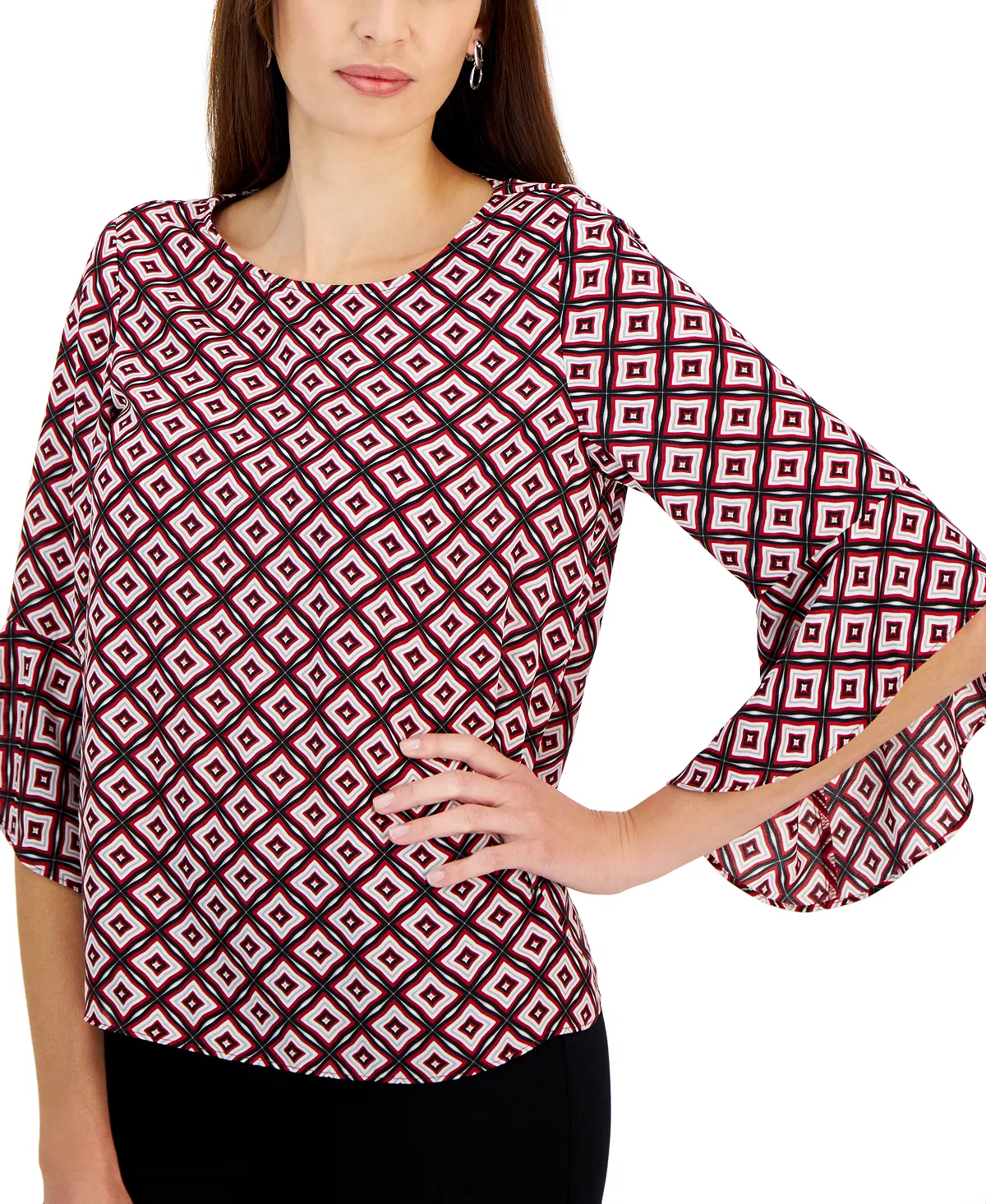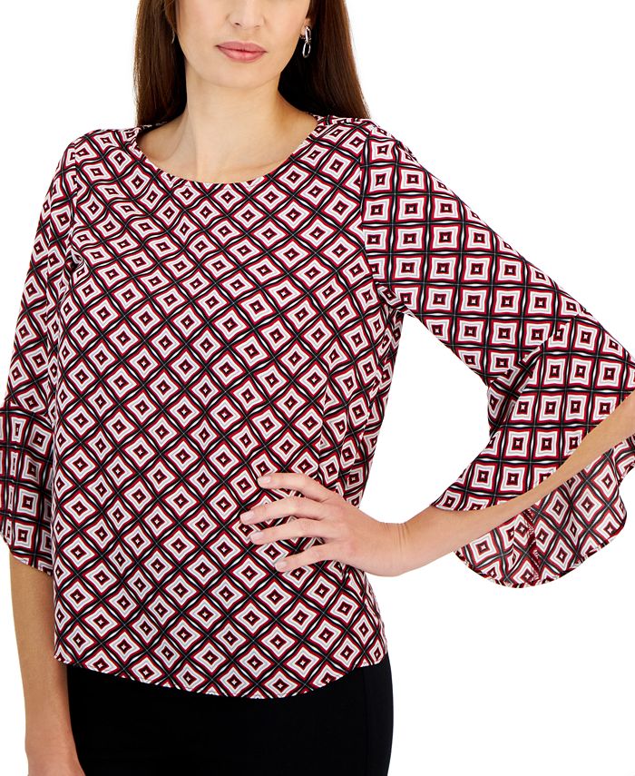 Update your wardrobe with this 3/4-sleeve top from Kasper. Ruffles compliment the sleeves, creating a look that is both flowy and feminine.