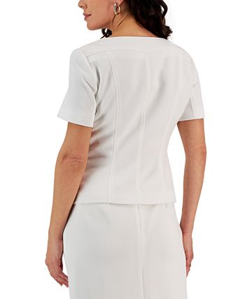 Kasper’s jacket adds a new twist to your workweek look with short sleeves, a square neckline and flap pockets.