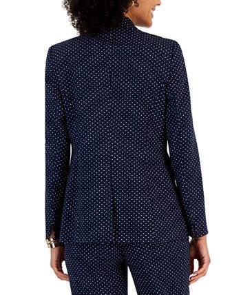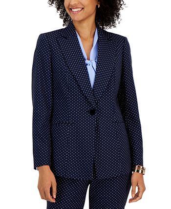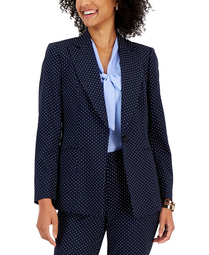 Perfectly suited for the office, this long-sleeve blazer from Kasper features a jacquard dot print throughout the one-button design.