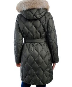 Faux-leather and faux-fur details adorn Lauren Ralph Lauren’s cozy down coat, which features ribbed cuffs and a faux fur–lined mockneck for added warmth.