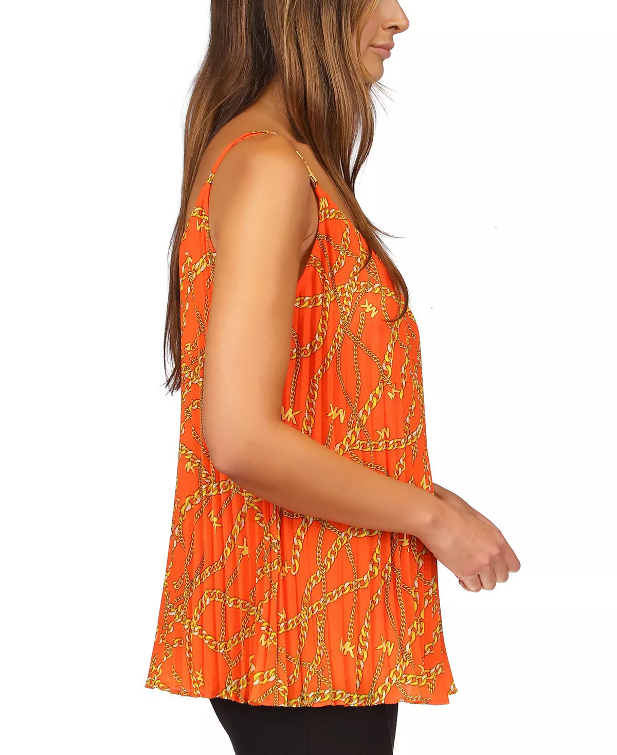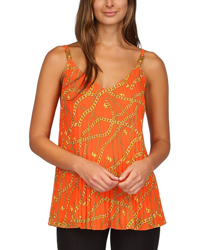 Soft pleats lend easy flow to this MICHAEL Michael Kors top, a sleeveless silhouette with signature hardware at the straps.