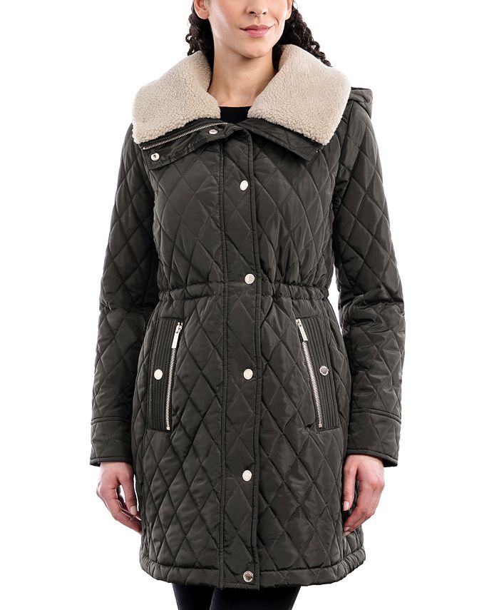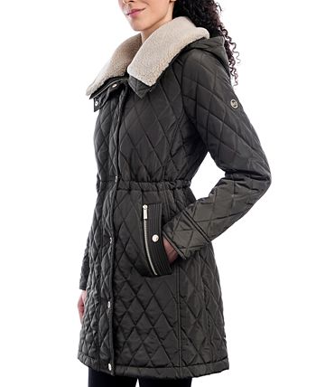 Cozy faux fur lines the wing collar on this beautifully quilted coat from MICHAEL Michael Kors.