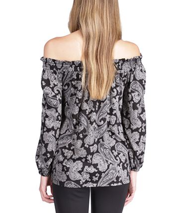 Explore shoulder-baring chic with this top from MICHAEL Michael Kors, a boho-inspired look freshened with a paisley print.