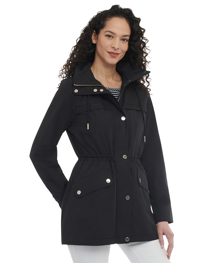 Stylish from front to back, this petite anorak from MICHAEL Michael Kors features a versatile zip-off hood and a water-resistant finish for those rainy days.