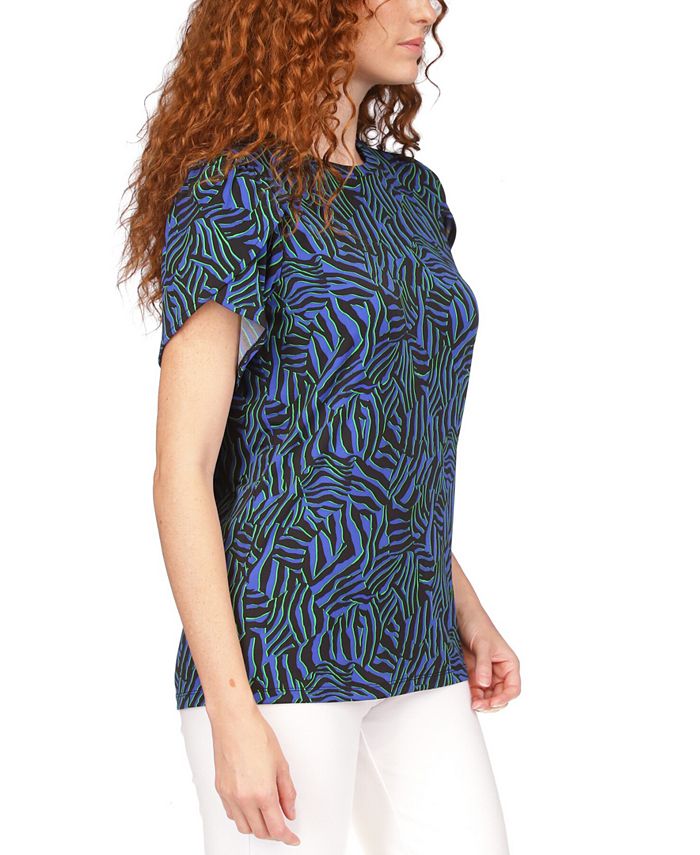 Re-energize your look with this MICHAEL Michael Kors top, in a bold print on matte jersey capped with soft petal sleeves.