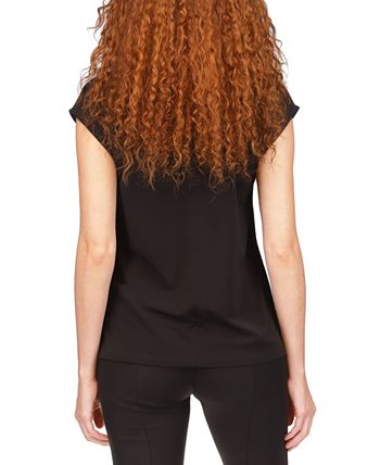 This sleeveless top by MICHAEL Michael Kors is elevated with a unique twist neckline showcasing a beautiful keyhole design.