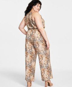 Bar III Plus Size Sleeveless Snake-Print Jumpsuit, Created For Macy’s
