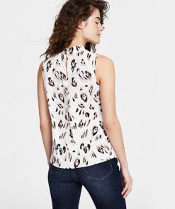 Bar III Women’s Animal Print Drape Mock Neck Sleeveless Blouse