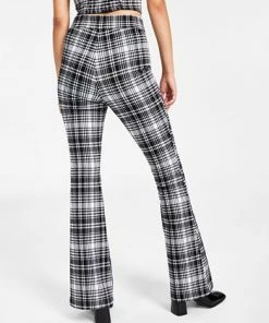 Bar III Women’s Plaid-Print Flare-Leg Pants, Created For Macy’s