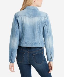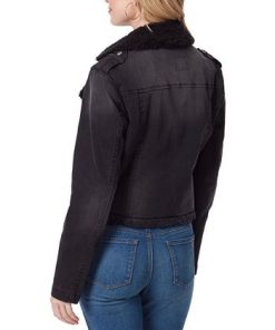 Jessica Simpson Women’s Finley Faux-Fur Trim Denim Moto Jacket