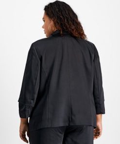 Bar III Plus Size Washed Satin Pleated-Sleeve Jacket, Created For Macy’s