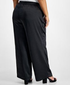 Bar III Plus Size Washed Satin Pull-On Wide-Leg Pants, Created For Macy’s