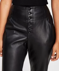 Bar III Women’s Faux-Leather Button-Fly Ankle Pants, Created For Macy’s