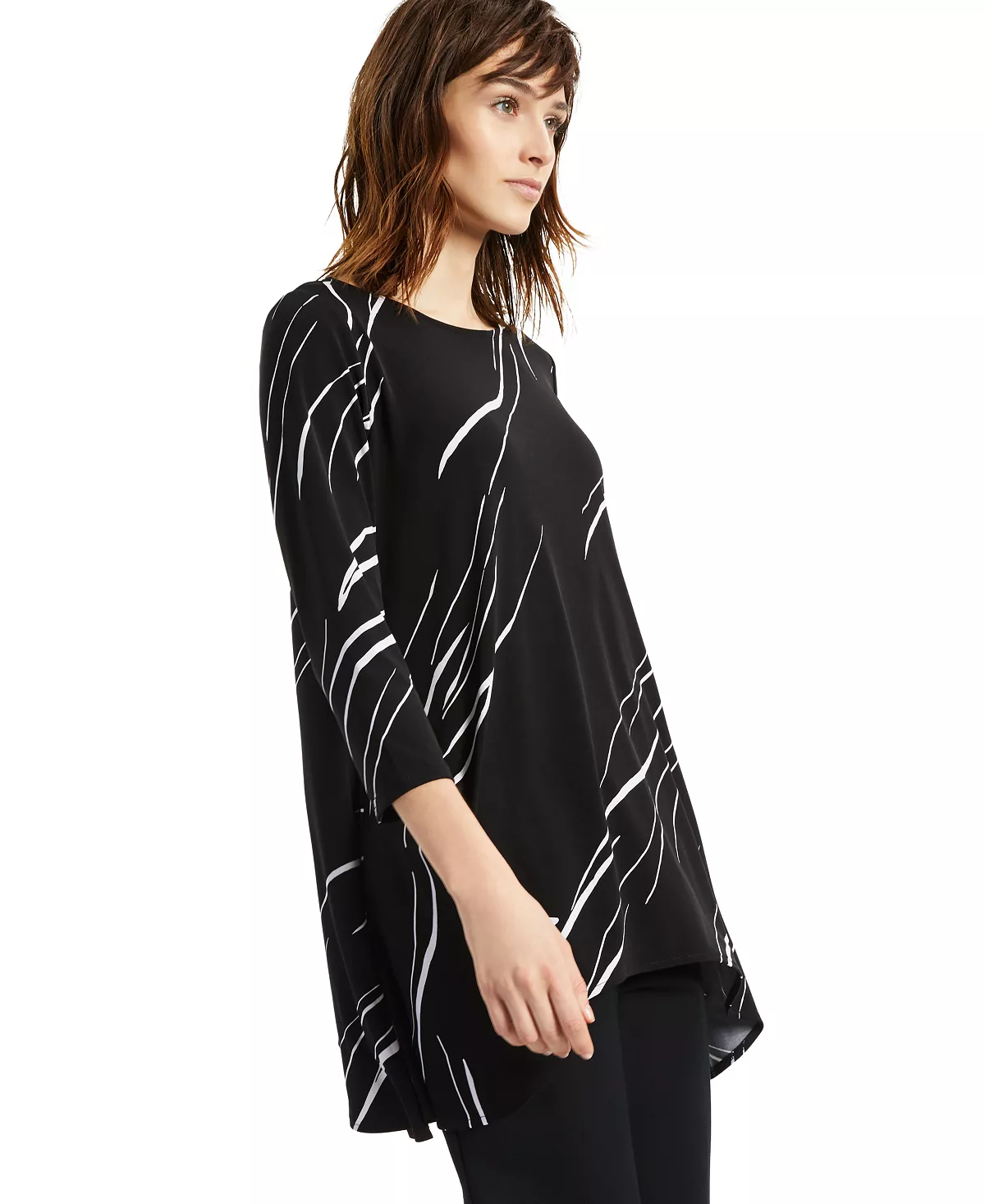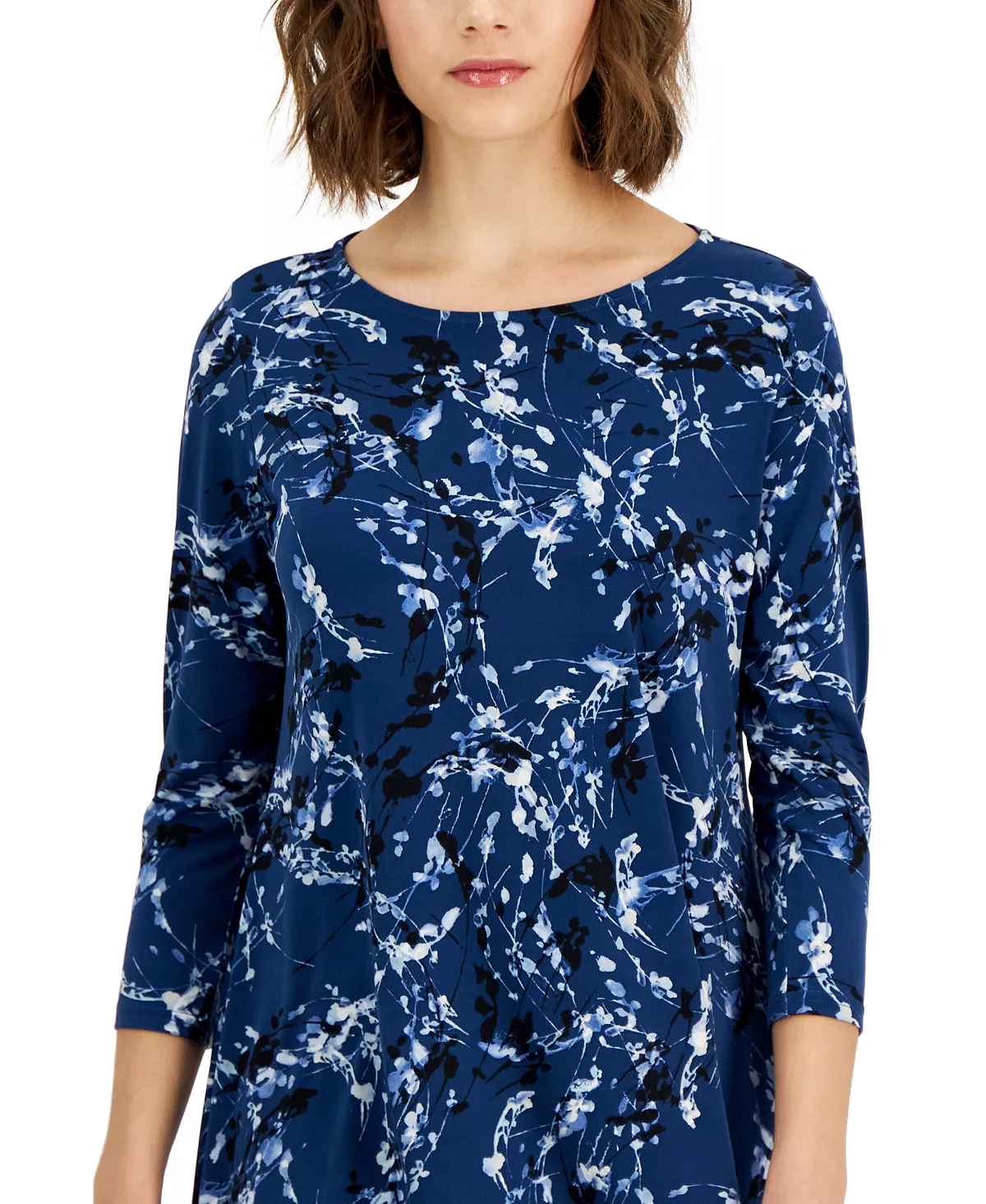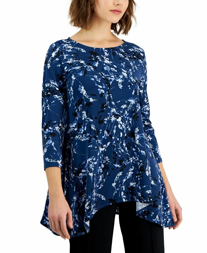 Alfani opens up this printed top with a scoop neckline, and closes it out in style with an asymmetrical hem.