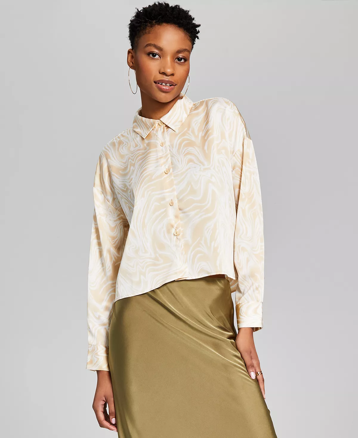 Sleek, soft and fluid this satin shirt by And Now This is finished in a draped silhouette, for a gorgeous look that always adds movement and shine to your ensemble.