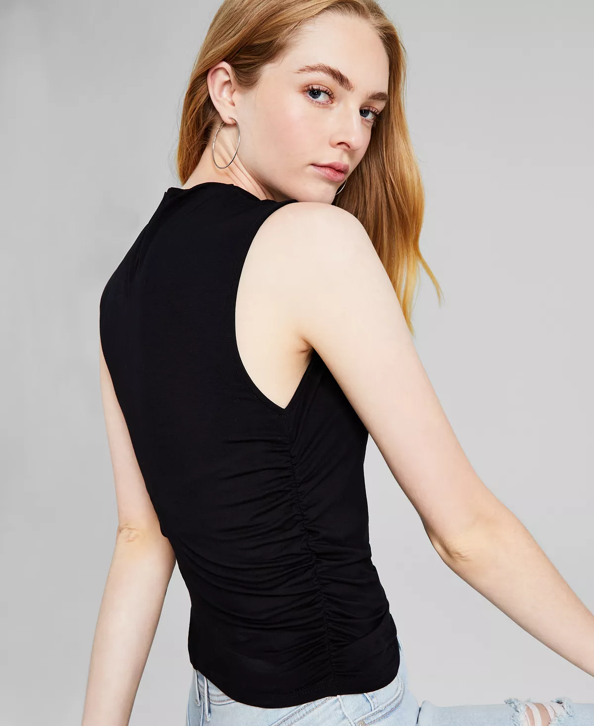 Side-ruching smooths and flatter the figure with this women’s top from And Now This, a charming addition to any well-rounded closet.
