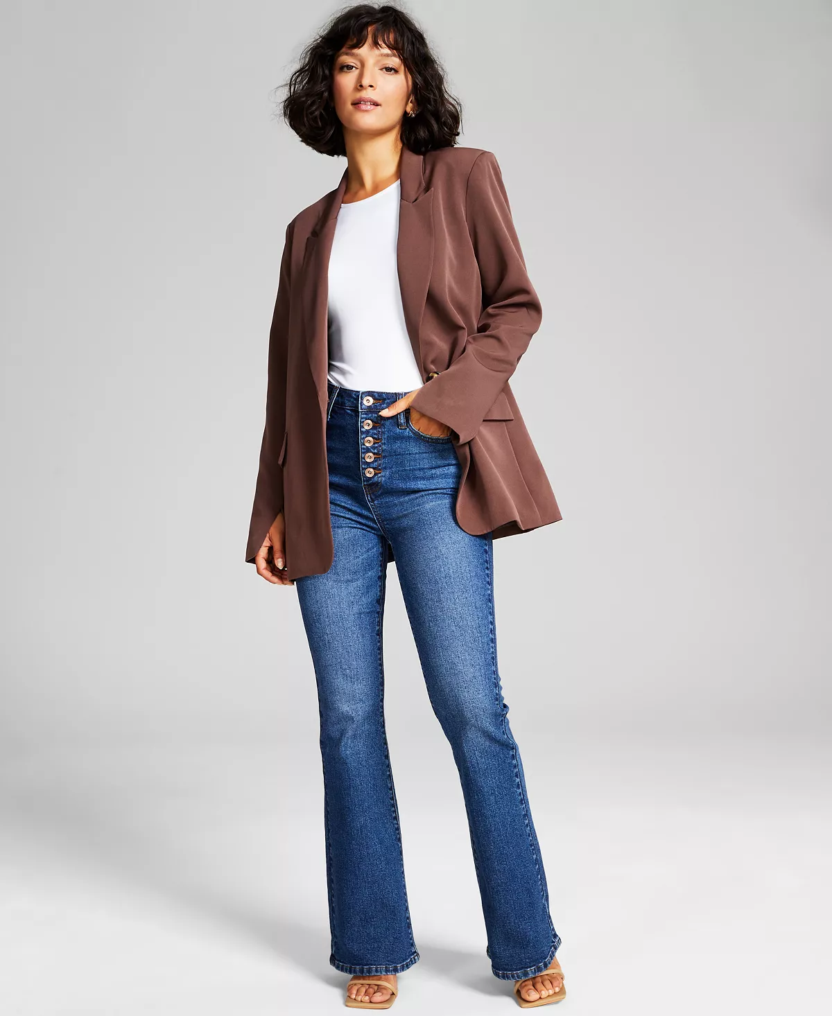 Add a professional polish to any outfit with this versatile And Now This’ sophisticated oversized blazer, a flattering one-button design finished with modern split cuffs. This Blazer has a deep v neckline and is fully lined.