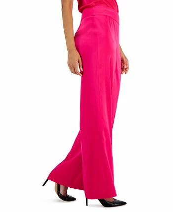 Anne Klein presents chic, polished style with these high-rise pants in a flowing wide-leg silhouette.