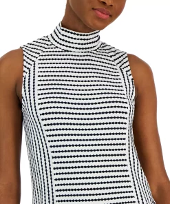 The textured allover stripe and fitted, mock neck design of this Anne Klein top is the perfect combination for a truly versatile top. Try layering under your favorite blazer or jacket or pairing with a pencil skirt for a chic look.