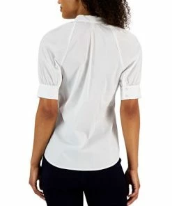 Touched of metallic and fringed trim elevate your professional looks with this open-front tweed jacket from Anne Klein.