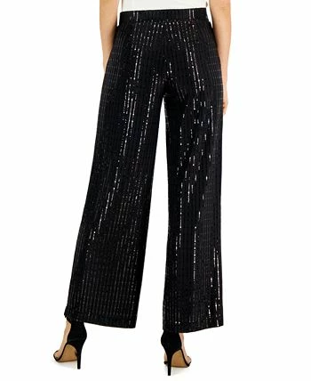 Let the black pants be the star of show! Anne Klein elevates the classic pants with a shimmering, shining finish, be ready to dazzle the room in this statement piece, cut in a wide-leg silhouette.