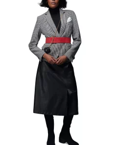 A metallic finish lends an elevated feel to Anne Klein’s tweed jacket.