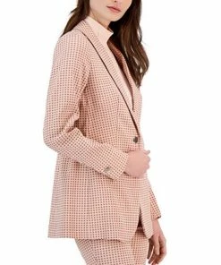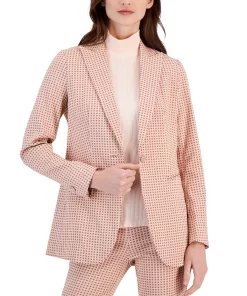 A stylish square foulard print adds a menswear-inspired touch to Anne Klein’s stretch-enhanced, single-button blazer.