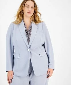 Bar III Plus Size Textured Crepe Single-Button Blazer, Created For Macy’s