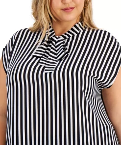 Look tall and feel confident in this vertically-striped plus size top from Bar III.