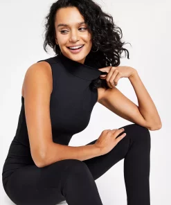 A sleek look for your closet from Bar III, this women’s mock neck bodycon top is featured in a cropped silhouette perfect for styling with high waist bottoms.
