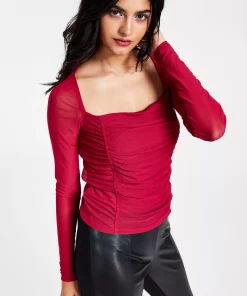 Look sleek and chic in Bar III’s stylish square-neck top, a soft mesh design finished with flattering ruching at the front.