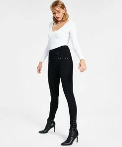 Stud details draw the eye in these fierce pull-on style leggings from Bar III.
