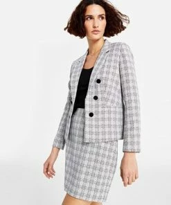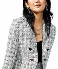 For a chic work look, Bar III presents this tweed faux double-breasted blazer, sure to be your new fave.