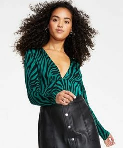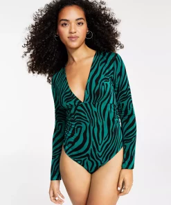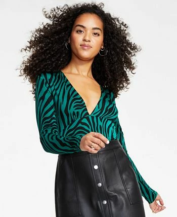 Get spotted in this chic bodysuit from Bar III designed with a deep V-neck and a gorgeous zebra print throughout.
