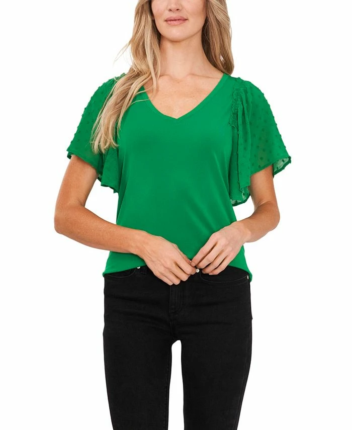 Pretty clip-dot sleeves bring a feminine touch to this wear-everywhere blouse by CeCe.