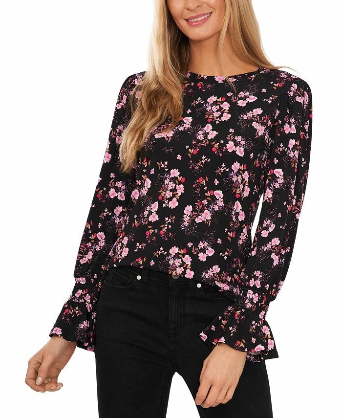 Bold floral prints are the star of this smocked-cuff top from CeCe.