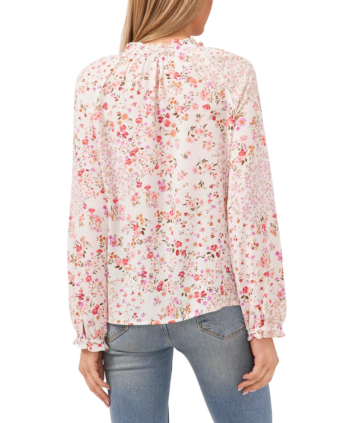 A ditsy floral print dresses up this split-neckline, ruffle-cuff top from CeCe.