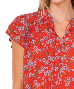 Fluttery sleeves and ties at the neckline pair with a fierce print on this stylish blouse from CeCe.