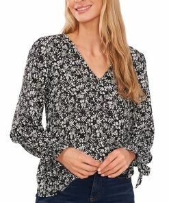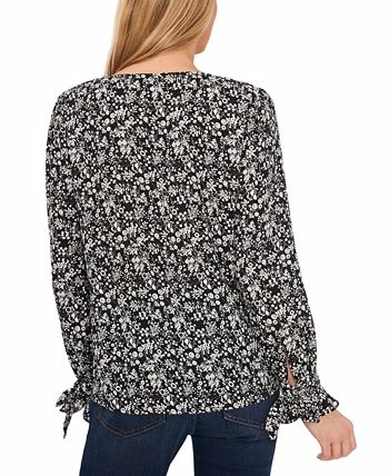 Slip on this effortless CeCe blouse for instant polish. Cute sleeve ties finish this charming look.