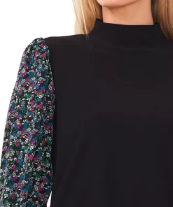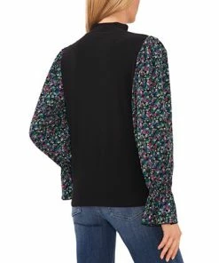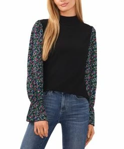 Romantic floral prints sleeve with flared cuffs frame this women’s top from CeCe, pair with a variety of bottoms for endless styling options.