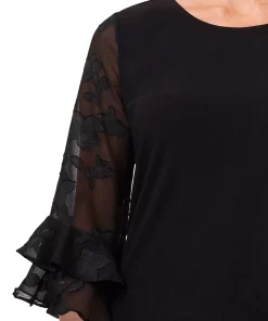 Framed with elegantly dainty, ruffled sleeves, this mixed-media top from CeCe is sure to elevate your wardrobe.
