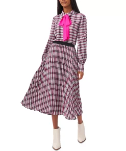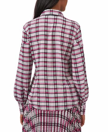 Designed with a timeless button-front silhouette for effortless styling, CeCe’s plaid top is fashioned with a contrasting neck bow for a modern and playful pop.