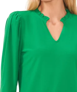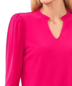 Framed with puff sleeves, CeCe’s split-neck top adds grace and style to your wardrobe.