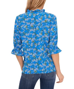 Blooming florals and ruffles aplenty lend a charmingly pretty look to this V-neck blouse by CeCe, finished with tie detailing at the neck, it’s the perfect addition to a chic casualwear collection.