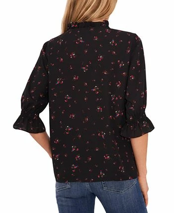 Blooming florals and ruffles aplenty lend a charmingly pretty look to this v-neck blouse by CeCe, finished with tie detailing at the neck, it’s the perfect addition to a chic casualwear collection.