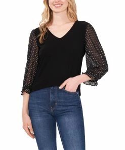 CeCe Women’s V-neck Polka Dot Sleeve Top