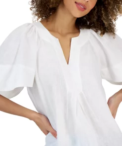 Pleats at the front and back bring stylish drape to this charming Charter Club top, in all linen for a premium feel.