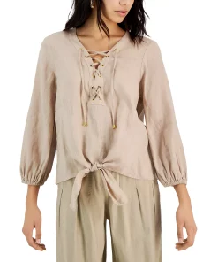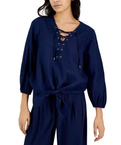 Comfort meets style with this lace-up, tie-hem blouse from INC International Concepts.