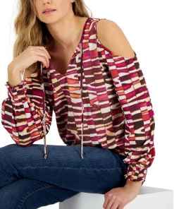 Level up your off-duty looks with this chic top from INC International Concepts, a cold-shoulder style with a fabulous print.